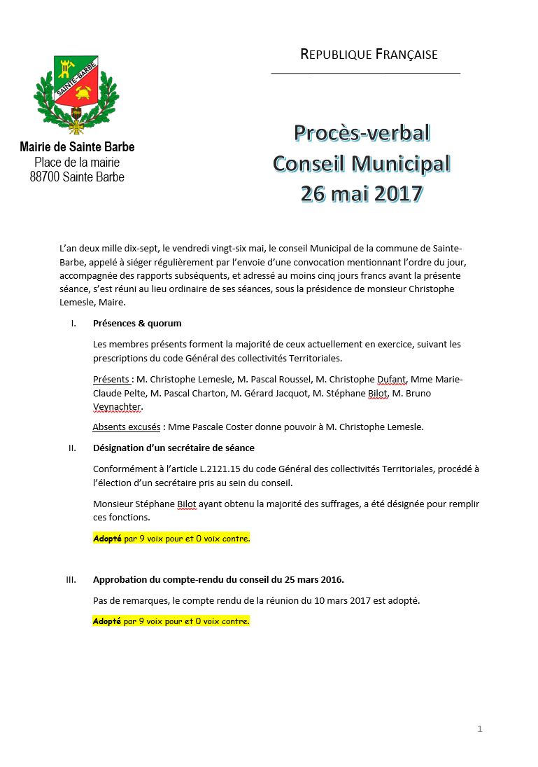 Compte rendu réunion de conseil municipal 2020-2026